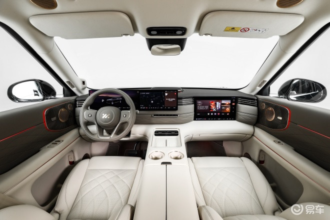 内饰方面,智己LS9同样采用最新的家族设计语言。中控台搭载27.1英寸5K臻彩驾舱屏,副驾前方还搭载了一块15.6英寸3K副驾娱乐屏,科技氛围直接拉满。此外,新车中国市场首搭百年豪华音响品牌B&O,全球首搭4D机械按摩座椅。
